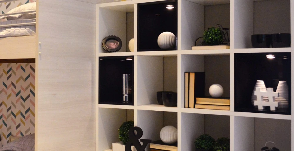 Se você quer dar ainda mais destaque para os nichos, também pode apostar na iluminação. No projeto abaixo, feito pela Italínea, os nichos possuem pontos de luz que chamam mais atenção para os objetos, realçando a decoração.