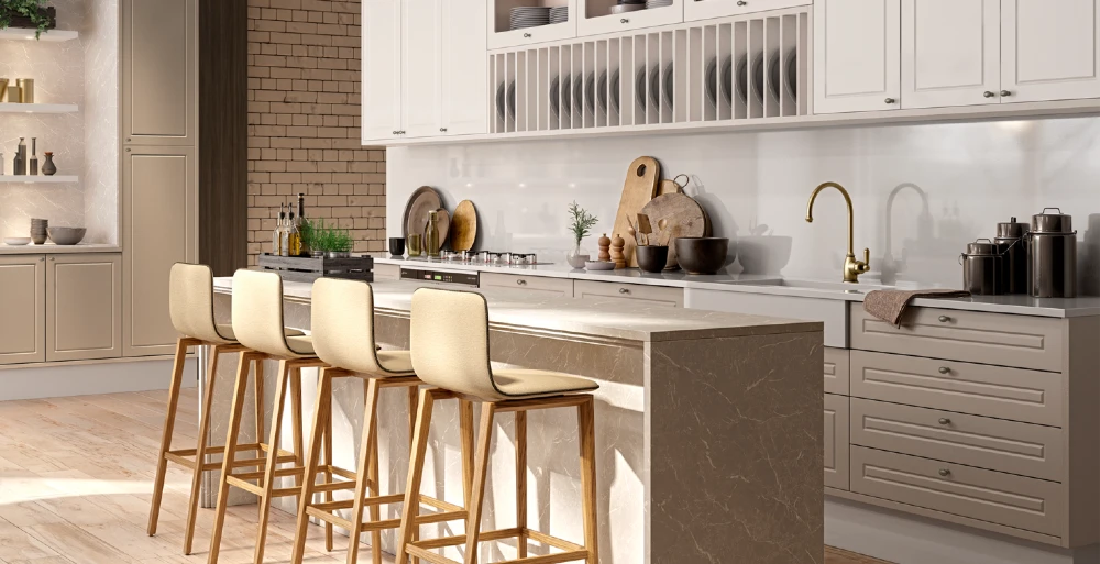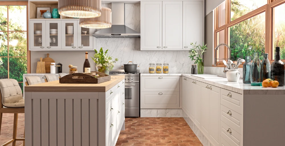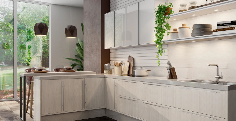 Com uma bancada livre, a cozinha com ilha oferece muitos recursos para você usar toda sua criatividade. Nessa área, você pode: