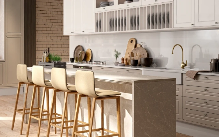 – Se você optar por banquetas ao redor da ilha, deixe um espaço interno aprofundado para acomodar cada peça e liberar a passagem na cozinha. Utilize de 20 a 30 cm de área interna.