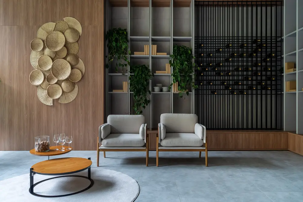 Para proporcionar mais versatilidade ao projeto, podem ser usadas mobílias modulares, como mesas de centro e bares, que permitem mudar a dinâmica do ambiente conforme necessário.
