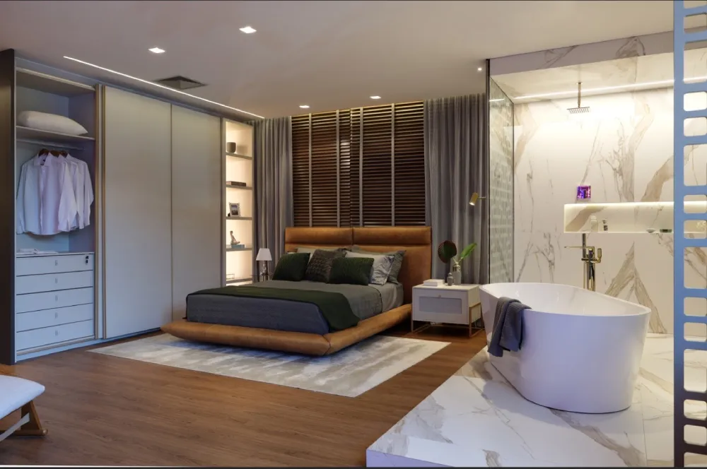 A iluminação é um dos elementos mais importantes na criação de um ambiente acolhedor, e quando bem planejada, faz toda a diferença. Em um dormitório de casal, a iluminação indireta pode ser usada para criar uma atmosfera relaxante. No dormitório de solteiro, uma luminária de mesa pode ser útil para estudos e leituras noturnas.