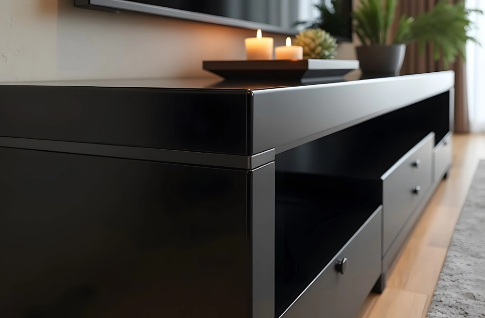 A laca transforma o visual dos móveis planejados, conferindo um acabamento luxuoso e elegante. Esse efeito elevando o ambiente, seja ele moderno, clássico ou minimalista.