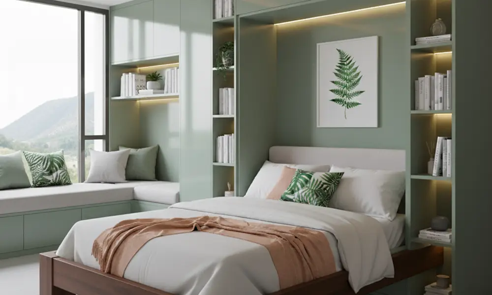 O quarto pede suavidade. Aqui, tons pastel, verde menta, rosa queimado e azul claro ajudam a criar um clima de descanso. Quem prefere algo mais sofisticado pode combinar tons amadeirados escuros com neutros claros, criando um contraste acolhedor e elegante.